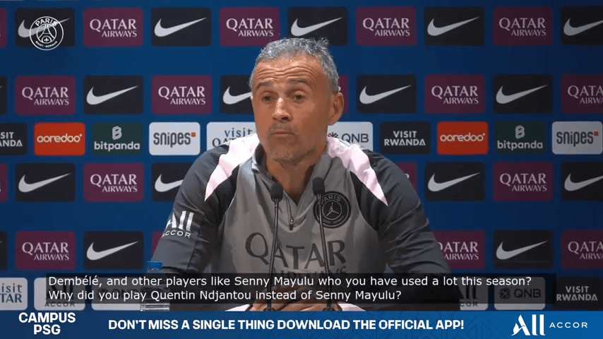 昨天您曾被问到为何在周三的比赛中让恩詹图首发,能否再解释一下您的考量?尤其是您是否将他视为轮换阵容的一部分,与登贝莱或马尤卢等球员形成竞争?因为本赛季初您经常使用马尤卢,比如上周三为什么选择姜图而不是马尤?