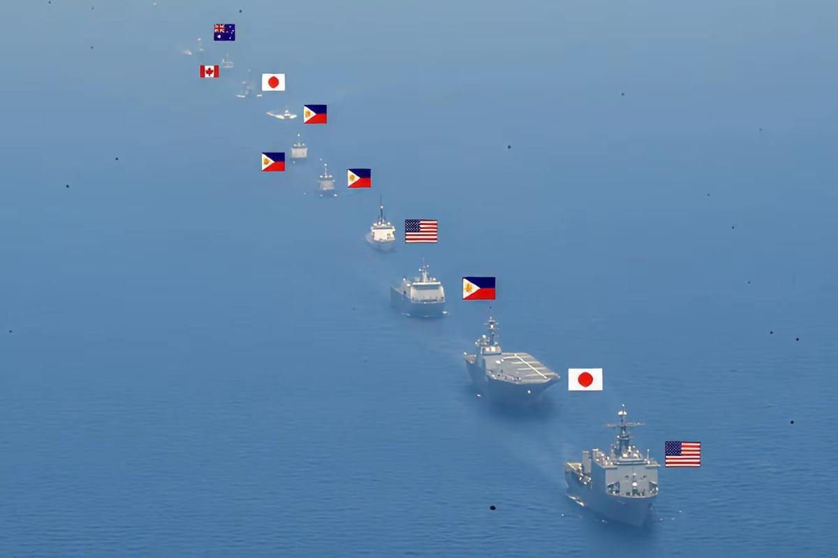 与此同时,自4月20日启动的"肩并肩-2026"联合军演正在持续进行。此次演习参演总兵力达1.7万人,参与国家除美菲外,还包括日本、澳大利亚、加拿大、法国和新西兰。尤为值得关注的是,日本自卫队此次是二战后首次派出作战部队全面参与实战科目演练,演习内容从以往的人道救援、反恐等非传统安全领域,全面转向海上安全作战、防空反导、远程精准打击、岛礁争夺等高强度对抗性科目。演习地点选择在菲律宾吕宋岛北部、巴坦群岛和巴拉望岛等敏感区域,其中巴坦群岛最北端距离中国台湾岛仅约140公里,其战略指向性不言而喻。